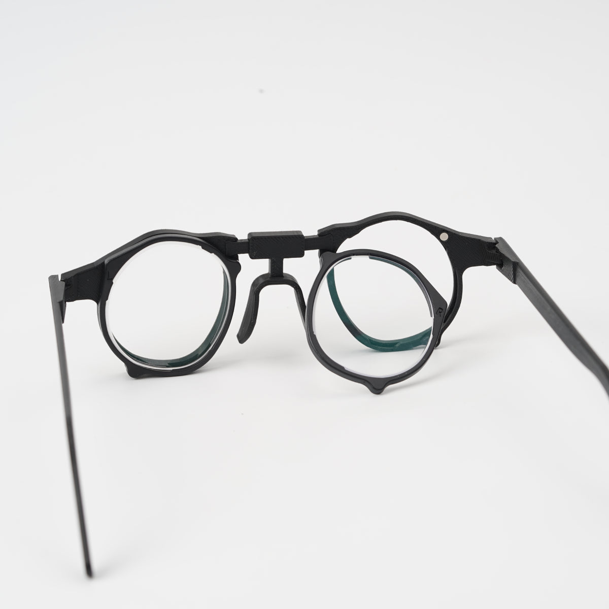 Integrated lens frames: the lenses are fixed in place, allow for a better fit with the machine's goggles, and have less impact on the FOV.