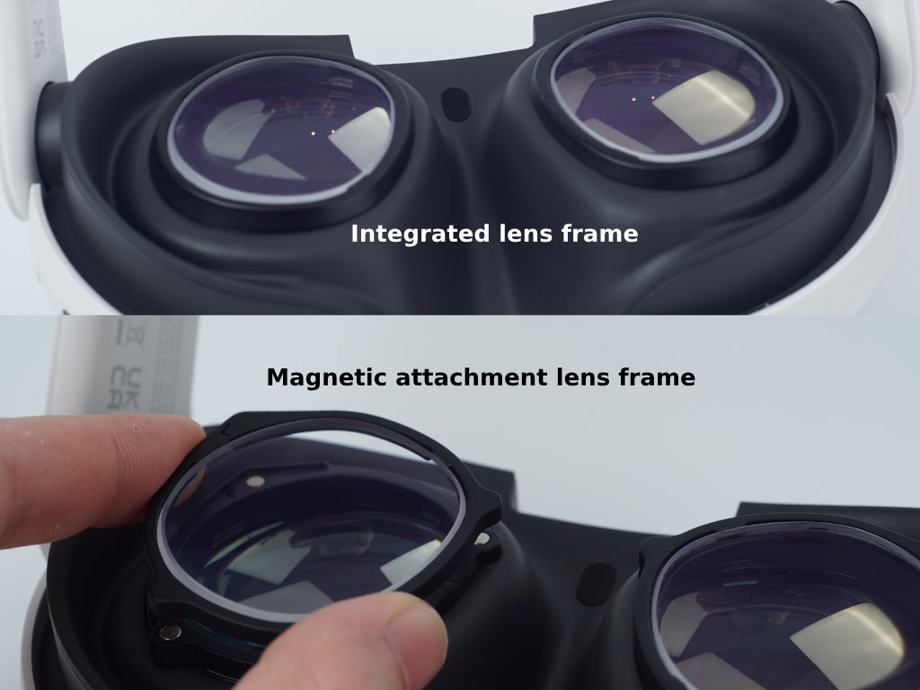 Magnetic attachment lens frames: have a slightly larger impact on FOV compared to integrated lens frames but enable quick replacement, making them convenient for multiple users.